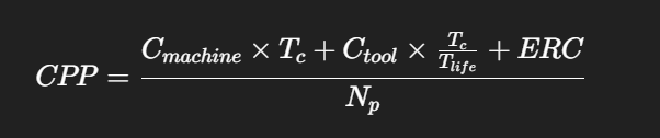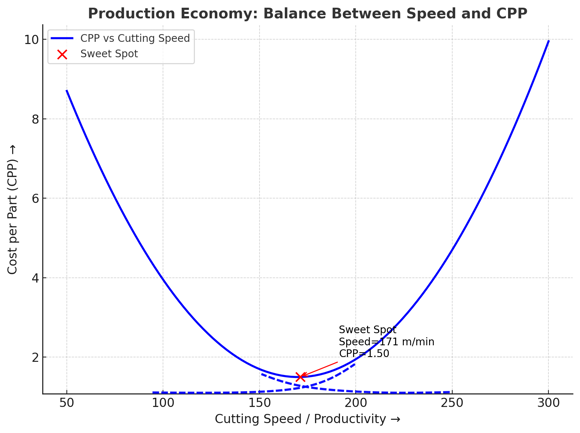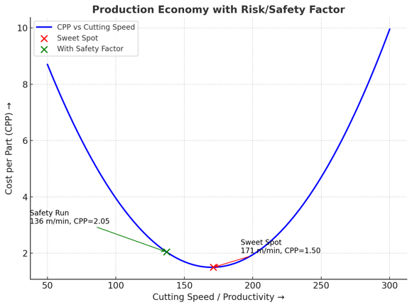 • หาจุดที่ Cost per Part ต่ำสุด ไม่ใช่แค่ Machining time ต่ำสุด